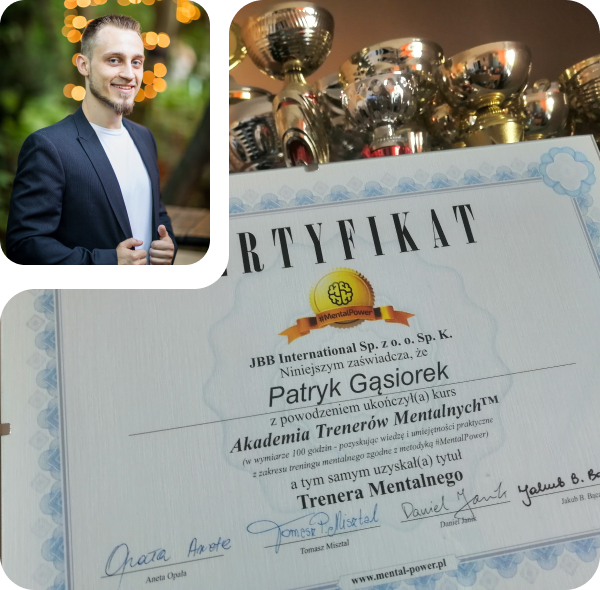 Cześć, nazywam się Patryk Gąsiorek i jestem Certyfikowanym Trenerem Mentalnym.